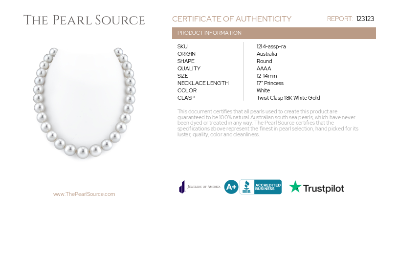 This exquisite South Sea pearl necklace features 12-14mm, AAAA quality pearls hand-picked for their radiant luster.