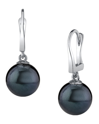 These earrings include two beautiful black freshwater pearls with 'Very High' luster, our highest grade available. These stunning pearls hang from 14K white or yellow gold earrings to create a product that displays pure, classic elegance.