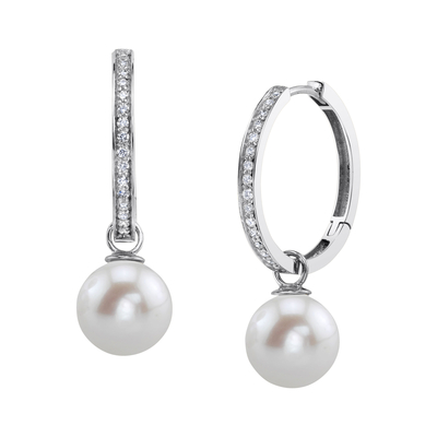 These exquisite pearl huggie earrings add a touch of elegance to any occasion. These earrings feature two lustrous 9mm AAAA quality Freshwater pearls, hand picked for their gorgeous luster and unblemished surface. The pearls are mountings on 14K white gold.