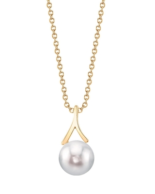 This pendant features a gorgeous 8-9mm AAAA quality Freshwater pearl hand picked for its luster and overtones. The pearl is mounted on 14K gold. The pendant is packaged in a beautiful jewelry box, perfect for gifting.