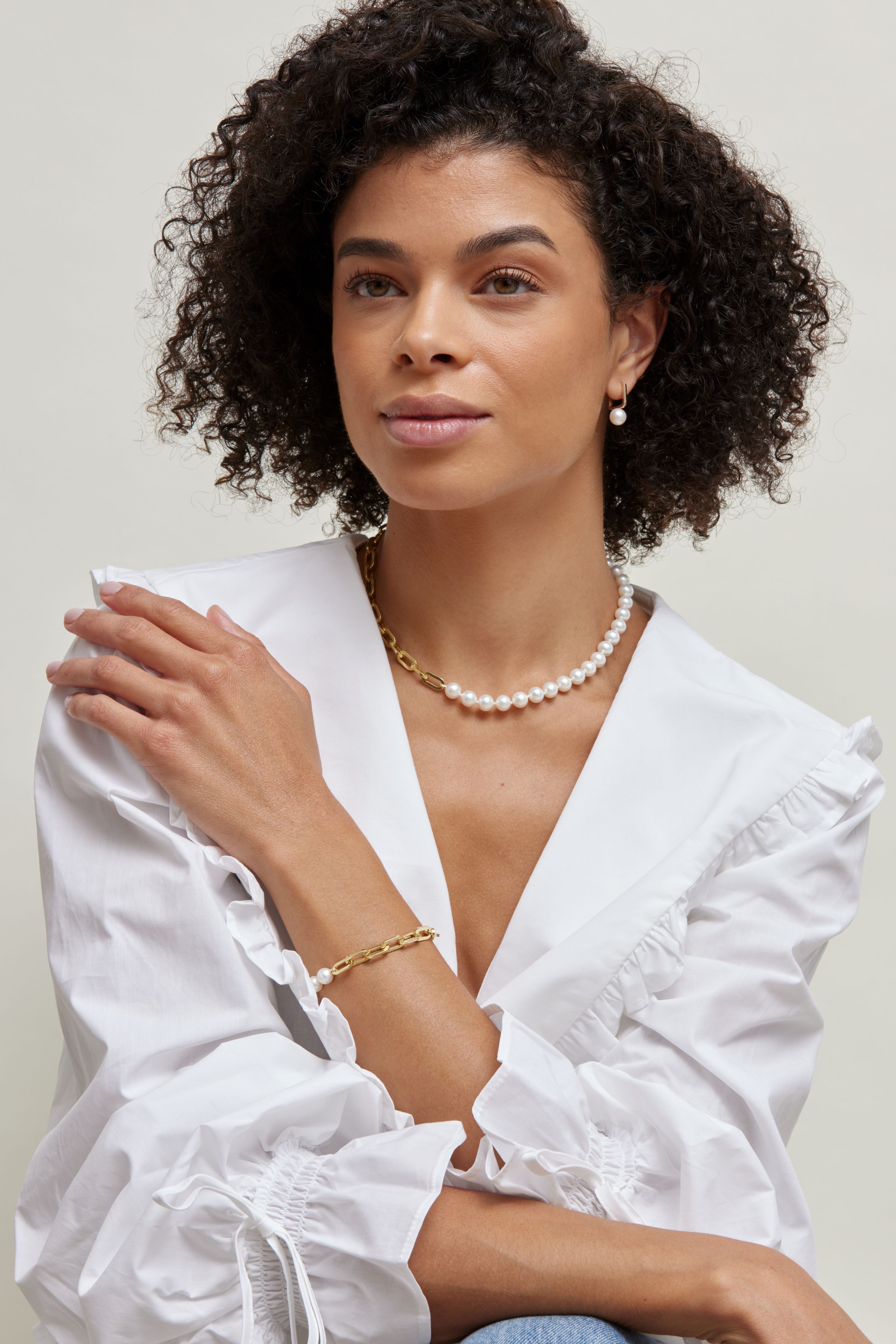 7mm White Freshwater Scarlett Pearl & Chain Bracelet