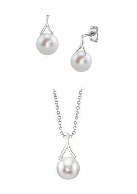 This set features gorgeous 8-9mm AAAA quality white Freshwater pearls hand picked for its luster and overtones. The pearls are mounted on 14K white gold. This set comes packaged in a beautiful jewelry box, perfect for gifting.