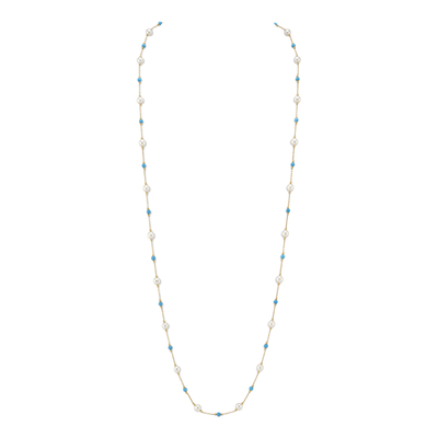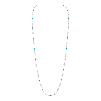 White Freshwater Pearl Tincup Turquoise Necklace White Freshwater Pearl Tincup Turquoise Necklace - Model Image White Freshwater Pearl Tincup Turquoise Necklace - Secondary Image